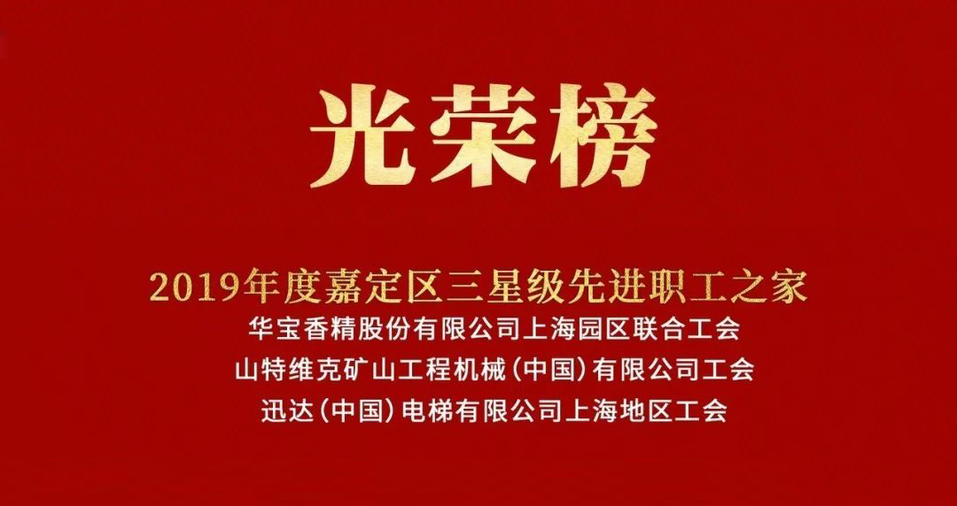 華寶香精股份有限公司上海園區聯(lián)合工會(huì )榮獲上海市嘉定區2019年度星級(三星級)“先進(jìn)職工之家”稱(chēng)號